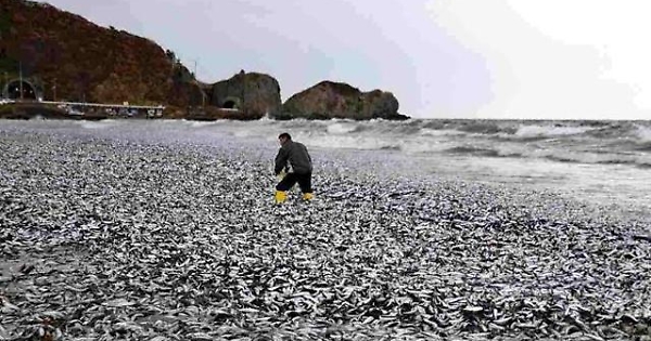 Spiaggia coperta da migliaia di sardine e sgombri morti a Hakodate: il fenomeno mai visto in Giappone. I ricercatori locali hanno spiegato che l’incidente coincide con la stagione della migrazione delle sardine.