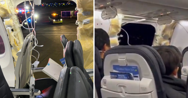 Il portellone cede in volo, buco nella fusoliera: il Boeing 737 è costretto all'atterraggio d'emergenza Il video