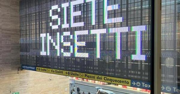 Il video della scritta «Siete insetti» comparsa sul tabellone delle partenze nelle stazioni di Roma e Milano