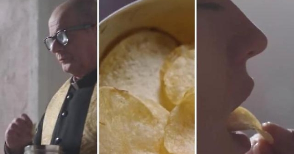 Lo spot di Amica Chips in cui una patatina sostituisce l'ostia durante la messa