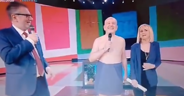 Il video del prof di Bologna nudo da Fazio a Che tempo che fa: in studio con solo un asciugamano sui fianchi