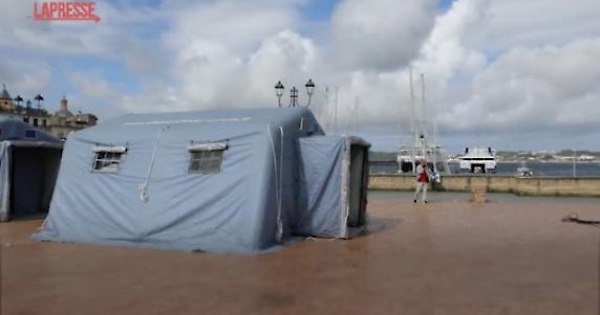 Terremoto ai Campi Flegrei: nel porto di Pozzuoli le tende allestite dalla Protezione Civile