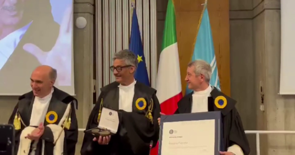 Fiorello ha ricevuto dalle mani del rettore Giorgio Calcagnini dell'Università degli studi di Urbino «Carlo Bo» il Sigillo di Ateneo, riproduzione del timbro apposto in un diploma di laurea datato 11 ottobre 1588. Un riconoscimento che in passato era stato assegnato ad artisti (come il regista Marco Bellocchio), scrittori, imprenditori (Lamborghini, Marzotto, Moratti), il magistrato Nicola Gratteri e la Guardia di finanza. E ora anche a Fiorello, per l'occasione con tanto di tocco e toga con alamari d'oro e coccarda, che ha poi detto rivolgendosi alla madre seduta nel pubblico: «Mamma, ce l'abbiamo fatta».