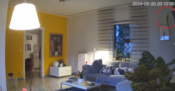 Le immagini girate dalle telecamere di videosorveglianza in una casa a Pozzuoli, in provincia di Napoli, mostrano gli attimi in cui la terra ha tremato lo scorso 20 maggio durante una scossa di terremoto di magnitudo 4.4. Il video mostra il lampadario che oscilla vistosamente e gli oggetti che cadono dagli scaffali e vanno in frantumi. Negli ultimi secondi della clip, un uomo si precipita a prendere il proprio gatto prima di darsi alla fuga.