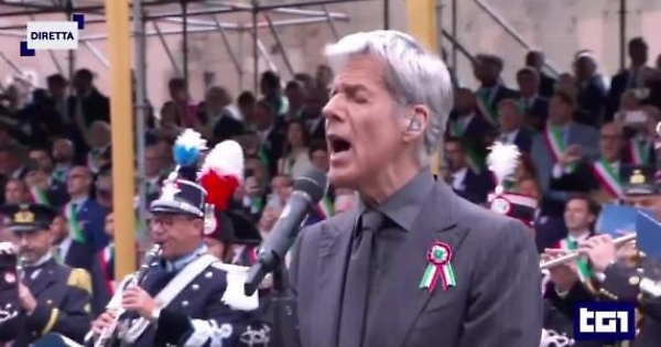 Claudio Baglioni ha cantato il «Canto degli italiani» di Mameli e Novaro all'apertura della Rivista Militare ai Fori Imperiali, a Roma, in occasione delle celebrazioni della Festa della Repubblica. Le immagini trasmesse in diretta dal Tg1 Rai.