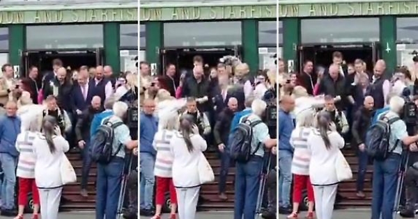 stato preso di mira - mentre usciva da un pub di Clacton in riva al mare circondato da sostenitori - da una giovane donna che gli ha lanciato addosso una bevanda colpendolo in faccia.