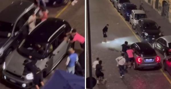 La lite scoppia all'1.30 di venerdì in via San Vito, nel centro di Milano, vicino a via Torino. La scena viene ripresa dall'alto, con il telefonino, da un residente. Da una parte un giovane svizzero, che sta salendo in auto con la fidanzata. Dall'altra un gruppo di ragazzi, con i quali nasce un alterco. Poi le botte. L’autista spinge sull'acceleratore: travolge cinque giovani, che si arrampicano sul cofano e si appendono alle portiere cercando di fermarlo. Nell'allontanarsi, danneggia otto macchine in sosta e il dehor di un locale. La serata finisce per tutti in ospedale, anche se nessuno è in gravi condizioni. L’autista, sottoposto ad alcoltest, è risultato in stato d’ebbrezza ed è stato indagato dalla polizia locale.