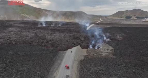 (LaPresse) In Islanda prosegue lento ma inesorabile l'avanzamento della lava fuoriuscita dall'eruzione vulcanica nella penisola di Reykjanes. Le riprese dei droni mostrano il flusso del magma in movimento.