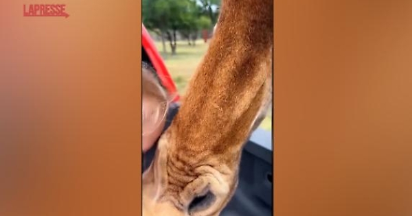 La giraffa solleva una bambina, paura durante il safari in Texas
