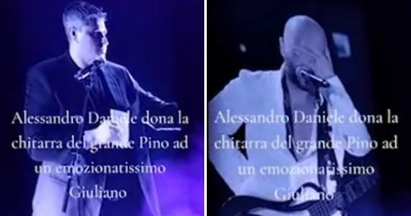 Il figlio del cantautore scomparso nel 2015 gli ha consegnato lo strumento conferendogli il premio Musicante. Giuliano ha dunque suonato, con la chitarra di Pino Daniele, due suoi pezzi: «Napule è’» e «Mal di te».