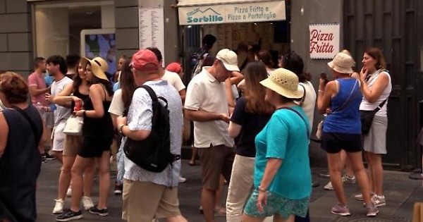 (LaPresse) A Napoli termometri oltre i 36 gradi con una temperatura percepita intorno ai 40 gradi a causa dell'afa soffocante. Presi d'assalto i carrettini e gli acquafrescai da turisti e cittadini in cerca di refrigerio.