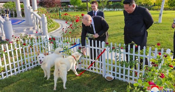 Durante la visita di Vladimir Putin a Pyongyang, in Corea del Nord, questa settimana, Kim Jong-un gli ha regalato due cani da caccia della razza nazionale Pungsan. Le immagini diffuse dai media russi mostrano Putin accarezzare entusiasta i cuccioli bianchi e poi ringraziare Kim Jong-un per il dono: «Il presidente russo si è chinato verso i cani e pare abbia impartito loro una sorta di comando».