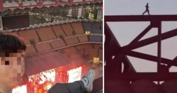 Il ragazzo, che documenta ogni sua arrampicata sui social beffandosi delle forze dell’ordine, lunedì sera, si è arrampicato fin sulle travi del terzo anello dello stadio Meazza durante il concerto di Sfera Ebbasta. Nelle immagini si vede una piccola sagoma in movimento.
