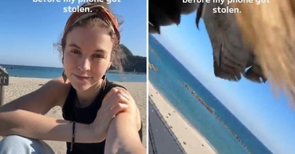 «Ripresa dal drone gratis»: un uccello ruba il telefono a una ragazza mentre sta girando un video