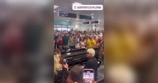 Ci ha pensato Marcello Cirillo, musicista lui stesso che ha partecipato a diverse trasmissioni tv (da «I fatti vostri» al Festival di Sanremo»), a risolvere l'ansia dei passeggeri bloccati all'aeroporto di Palermo, dopo il guasto informatico che ha lasciato a terra migliaia di aerei in tutto il mondo. Mettendosi al pianoforte, ha iniziato a suonare e ha coinvolto i presenti che si sono messi a cantare con entusiasmo. Quella che doveva essere una giornata di grande disagio, si è risolta così in una bellissima performance che ha sollevato gli animi dei passeggeri rimasti senza più aereo.