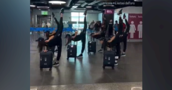 Una coreografia improvvisata per le "Farfalle", le italiane della ginnastica ritmica: prima di imbarcarsi per Parigi, le ragazze si sono esibite in aeroporto con l'aiuto del trolley. Uno show di pochi secondi ammirato da chi si trovava nello scalo romano di Fiumicino in quel momento. Le immagini sono state condivise su Instagram dalla capitana Alessia Maurelli. In sottofondo le note di Ennio Morricone e del suo brano "L'estasi dell'oro": ambizioso e benaugurante.