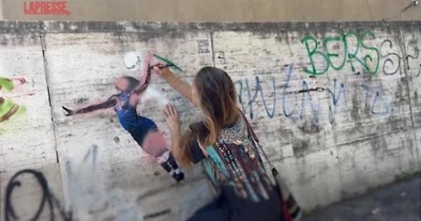 Una passante ridipinge con i colori naturali il murale di Paola Egonu vandalizzato a Roma