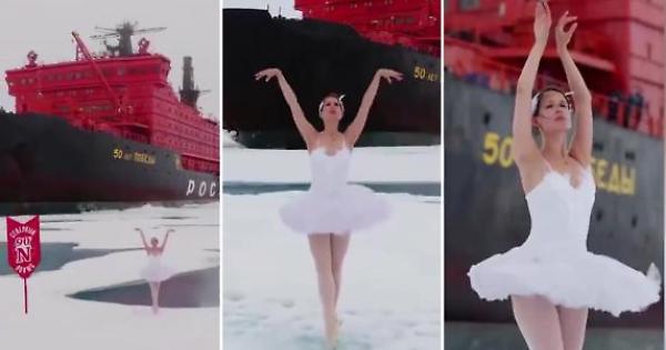 Una passeggera della nave rompighiaccio nucleare russa «50Years of Victory», ballerina non professionista, ha danzato un brano del balletto «Lago dei cigni» su musiche di Čajkovskij a pochi metri dal Polo Nord.