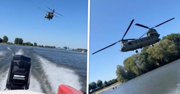 D’improvviso, il velivolo inizia un inseguimento in quella che a molti è sembrata una scena di Grand Theft Auto. Il Boeing CH-47 Chinook, si legge sui media olandesi, stava partecipando ad un’esercitazione nella zona e, a quanto pare, ha voluto cimentarsi in una «gara» col motoscafo.