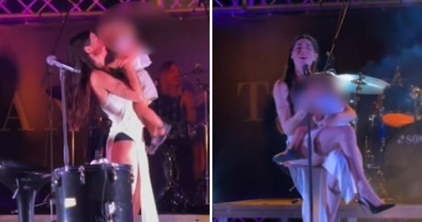 Stava cantando sul palco Bianca Atzei quando d'improvviso ha fatto irruzione il piccolo Noa, suo figlio di un anno e mezzo. È stato un momento emozionante per la cantante e per il pubblico.