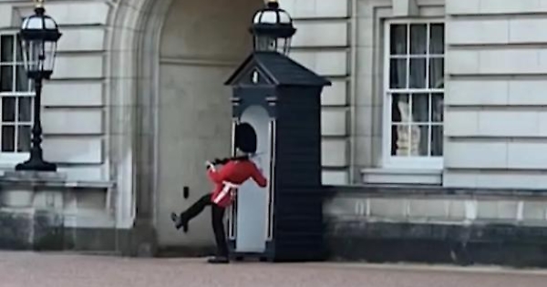 Il capitombolo della guardia reale davanti a Buckingham Palace
