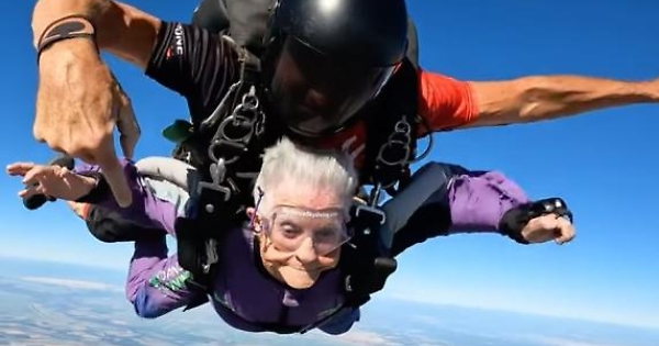 La nonnina festeggia il suo 90° compleanno con un lancio in paracadute