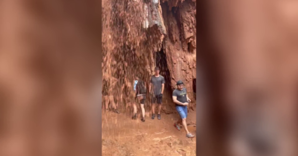 I turisti in visita al Grand Canyon sono rimasti bloccati dalle piogge improvvise che hanno causato alluvioni e un fiume di fango.