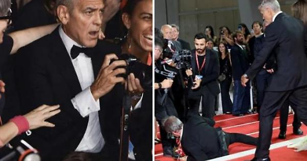 Venezia, George Clooney interviene a rialzare un fotografo caduto sul red carpet
