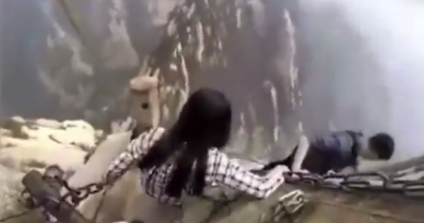 Questa discesa praticamente in verticale con scalini che danno sullo strapiombo della monte Huashan, in Cina, è il sentiero più ripido al mondo e di sicuro anche il più pericoloso. Si tratta di una delle 5 montagne sacre cinesi il cui nome in italiano significa ‘Fiore di montagna’ e si trova  vicino alla città di Huayin, nella provincia di Shaanxi. È una montagna con 5 picchi, il più alto tocca i 2.160 mt.