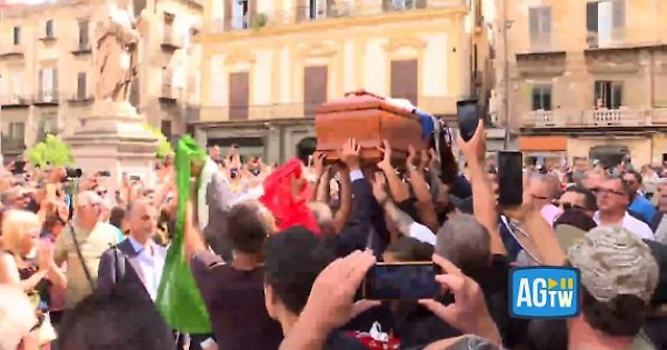 L'ultimo abbraccio a Totò Schillaci da parte della "sua" Palermo: all'uscita dalla Cattedrale, il feretro dell'ex calciatore ha attraversato una piazza gremita di cittadini e tifosi raccogliendo cori, sciarpe e bandiere rosanero e tricolori sulle note di "Notti Magiche".