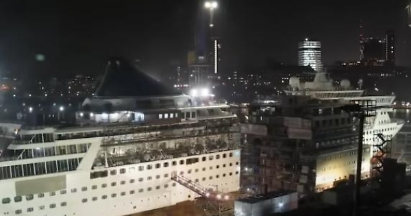 La grossa nave da crociera viene «allungata» per diventare ancora più grande: il timelapse