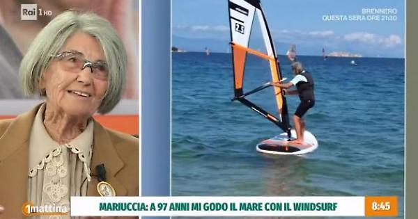 Maria Carla Rivano, per tutti Mariuccia, infaticabile 97enne sprint ha raccontato a Uno Mattina la sua passione per lo sport e in particolare il windsurf nata dopo i 60 anni.