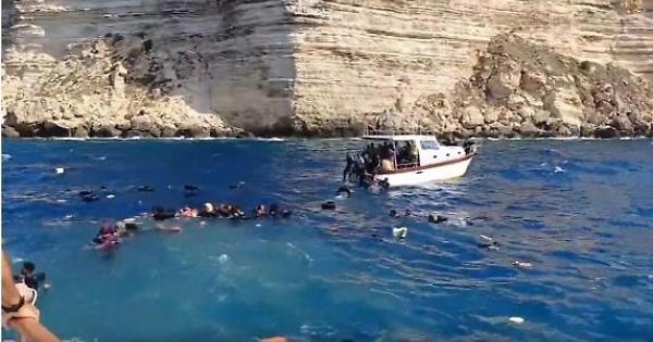 I turisti cercano di salvare i migranti arrivati a Lampedusa, ma qualcuno non ce la fa: le immagini drammatiche