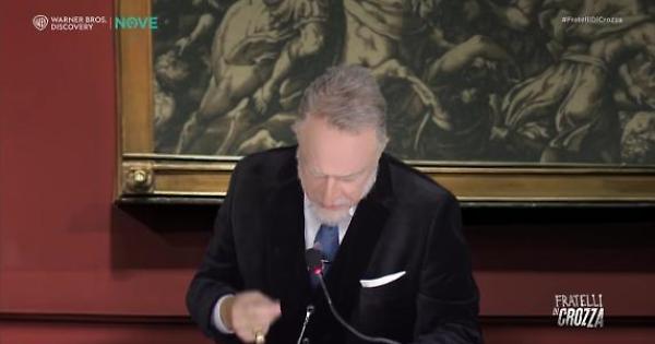 Nella nuova puntata di «Fratelli di Crozza», in onda ogni venerdì in prima serata su Nove, il comico torna nei panni del ministro della Cultura, Alessandro Giuli, che di recente ha presentato le linee guida del suo governo: «Le dinamiche diluvionistiche dell’elargizionismo alla sfera leninistica… hanno indotto uno svalvolanismo… ovoidale. Tradotto, ci siamo rotti di dare i soldi a Nanni Moretti. Quando parlo di Diluvionismo… è sinonimo di… ‘a pioggia’». Le criptiche parole del ministro nei giorni scorsi sono state da molti giudicate incomprensibili, e per questo Crozza fa dire al suo personaggio: «Il mio è solo machismo filosofico per dimostrare che ce l’ho molto più lungo io rispetto a Veltroni… il pensiero. La mia è ‘würstelizzazione’ dello spirito, ossia: ho un ego grande quanto un maiale».