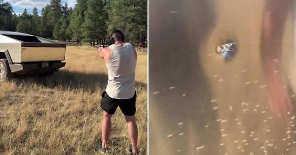 Un uomo decide di testare il suo Cybertruck Tesla, che, stando a quanto ha affermato Elon Musk, sarebbe a prova di proiettile, per vedere se resiste agli spari. Ma nella carrozzeria si forma un buco e l'uomo si dispera. Evidentemente non è davvero corazzato abbastanza per resistere ai colpi di arma da fuoco, soprattutto se esplosi a distanza ravvicinata.