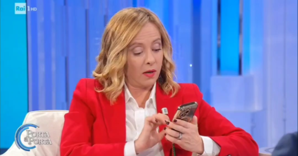 Meloni con la calcolatrice da Vespa, ma sbaglia i conti: «Ho fatto un casino»