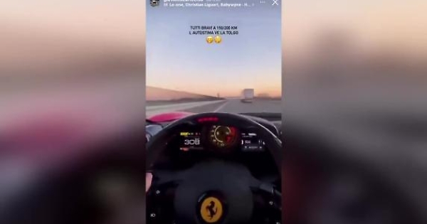 Si riprende con il cellulare metre sfreccia sull'autostrada Napoli-Roma a 330 kmh a bordo di una Ferrari. Sembra anche che stia guidando con una mano sola, mentre nell'altra tiene il cellulare con cui fa il video. Il video condiviso sui social è stato segnalato dal deputato Francesco Emilio Borrelli.