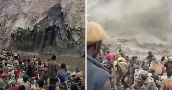 Le immagini mostrano il crollo di una parete di roccia in Congo, nella regione di Katanga, facendo emergere grandi quantità di rame. Il video, diffuso su X, mostra in momento in cui una larga porzione di roccia si stacca dalla parete, crollando in acqua: l'onda generata quasi travolge un gruppo di persone radunato lì vicino.