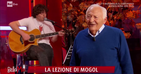 Pierluigi Diaco e Mogol hanno voluto cantare «I giardini di Marzo», celebre brano portato al successo da Lucio Battisti. Mogol cantante a BellaMa su Rai2, un momento certamente originale.