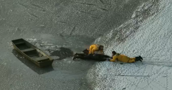 Un video condiviso sui social media dal dipartimento di polizia mostra i vigili del fuoco che avanzano cautamente sulla superficie ghiacciata, utilizzando una fune metallica per garantirsi stabilità. Dopo aver tratto in salvo l'uomo, i soccorritori sono tornati indietro e sono riusciti a recuperare anche il cane.