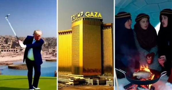 Così l'AI immagina il resort di Trump a Gaza: lui gioca a golf tra le macerie, i palestinesi confinati al freddo in un igloo