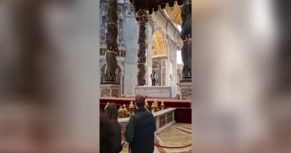 Momenti di tensione stamani nella Basilica di San Pietro a Roma. Un uomo, un cittadino rumeno, è salito sull'Altare della Confessione, sotto il Baldacchino del Bernini, scaraventando a terra e danneggiando 6 candelabri del 1865 dal valore di circa 30 mila euro. Il gesto è stato ripreso dai molti pellegrini e turisti presenti nella Basilica.