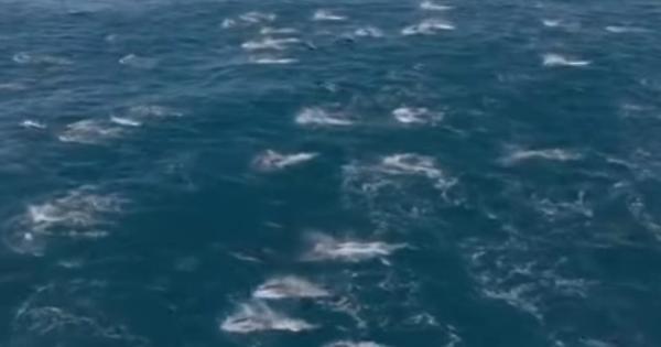 (LaPresse) Il capitano di un'imbarcazione ha ripreso in un video un branco di oltre 2mila delfini, al largo della California, compreso un delfino balena spesso avvistato a grande distanza dalla costa e in acque più profonde. Evan Brodsky, responsabile dell'agenzia di tour in barca privata Monterey Bay Whale Watch, ha avvisato i mammiferi a circa 18 chilometri dal porto.