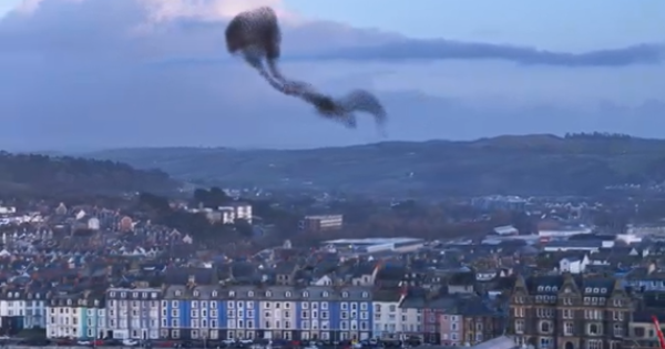 Migliaia di uccelli che volano all'unisono, come seguendo un disegno unico. Li ha ripresi un fotografo col suo drone nel cielo della cittadina gallese di Aberystwyth. I ricercatori non hanno ancora compreso appieno i meccanismi di questo comportamento degli stormi di uccelli, ma secondo il British Natural History Museum si ipotizza che questi volatili volino all'unisono per proteggersi da predatori come falchi e gufi. (Storyful)