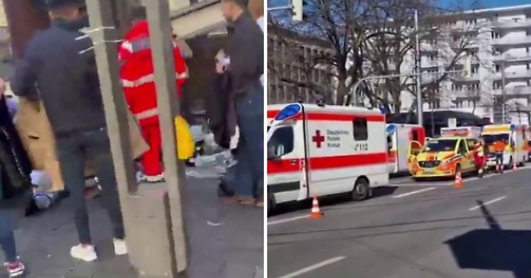 Auto sulla folla a Mannhein, in Germania, le prime immagini: persone a terra e diverse ambulanze
