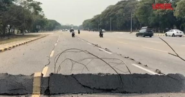 Terremoto in Myanmar: l'asfalto che si è sollevato e le voragini nelle strade provocate dalla scossa