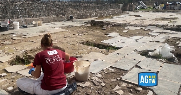 «Si tratta di un piano pavimentale in opus sectile a modulo geometrico con lastre di cipollino e listelli di giallo antico, che rappresenta un vero unicum all'interno di questo complesso per via dell'estensione: 160 mq appunto - spiega Clara Spallino, funzionario architetto del Parco archeologico dell'Appia Antica - Ora è in corso il restauro e creeremo un sistema di passerelle per rendere questo spettacolo visibile a tutti». «I marmi sono i grandi protagonisti della Villa dei Quintili - aggiunge Stefano Roascio, funzionario archeologo del Parco dell'Appia Antica - Questo esteso pavimento è stato così ben conservato perché nel corso del VI secolo ci fu una serie di terremoti a Roma che causarono enormi crolli di queste grosse strutture verticali, crolli che in qualche ebbero la funzione di proteggere i marmi sottostanti».