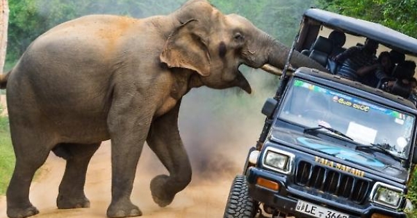 Nelle immagini si vede l’elefante infilare la proboscide all'interno del veicolo, spaventare i visitatori e quasi rovesciare il fuoristrada. Mentre il veicolo continuava la sua corsa, l'animale inizia a inseguirlo. Gli elefanti possono attaccare le auto in cerca di cibo se si abituano a riceverlo dai turisti.