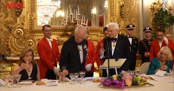 Re Carlo omaggia Mattarella in italiano durante la cena di gala al Quirinale: «Per la stima e l'affetto di cui gode»