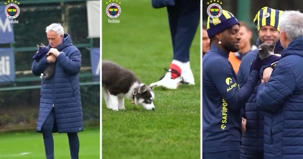 Mourinho porta un cucciolo di husky siberiano all'allenamento del Fenerbahce